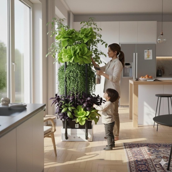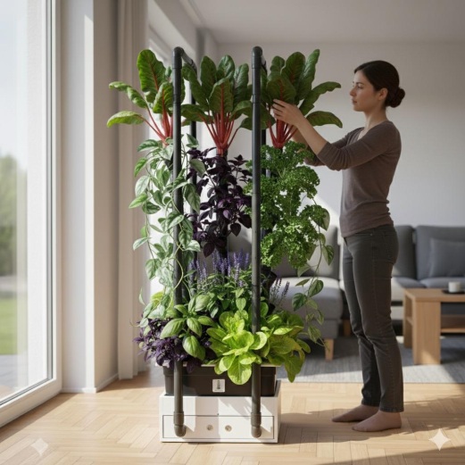 و گیاهان معطر را در خانه فراهم میکند. این دستگاه طراحیای عمودی و کم جا دارد که آن را برای